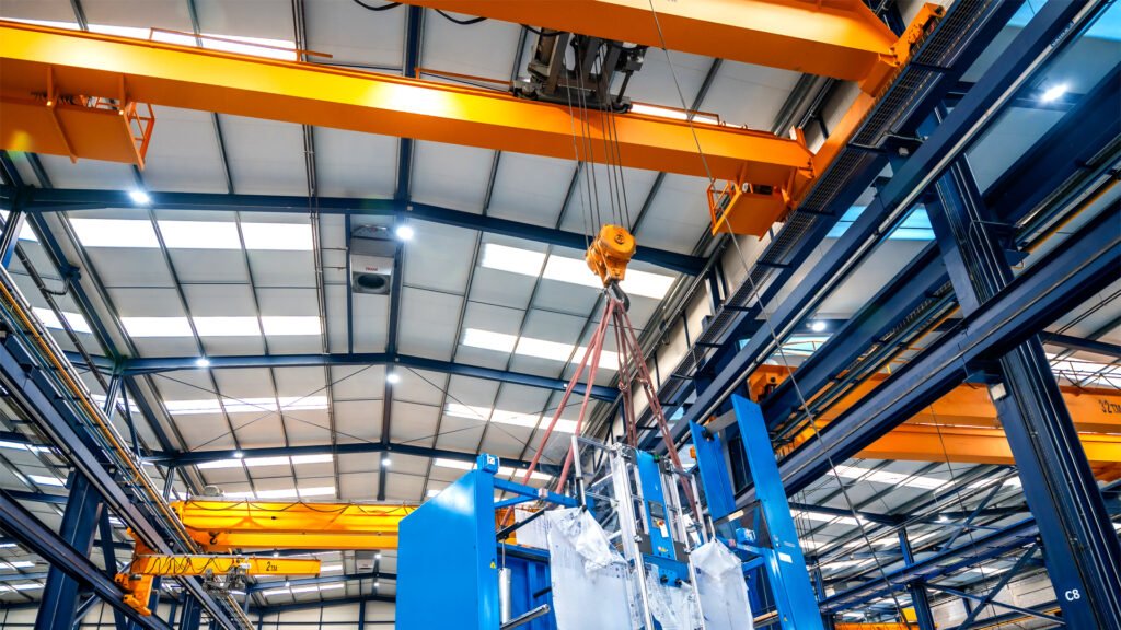 The client operated a complex creep crane system comprising two gantry cranes in a master-slave configuration, each equipped with two cross-travel hoist crabs. All crane movements were controlled via a radio hand-held operator panel, which interfaced with a PLC on the master crane through relay logic.